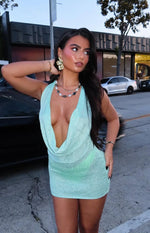 Green Glitter Cowl Neck Mini Dress