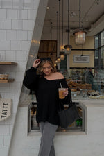 Wrap yourself in elevated comfort with our Delvey Black Chunky Knit Sweater, an essential for achieving a polished, cool-weather aesthetic. This heavyweight, oversized knit features a V-neck design and structured cuffs on the sleeves and hem, yet a refined silhouette. Pair this statement sweater with sleek faux leather leggings or fitted denim and chunky boots for an effortlessly warm and put-together look.