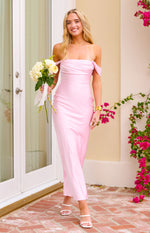 Ella Light Pink Off Shoulder Formal Maxi Dress