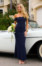 Ella Navy Off Shoulder Crepe Formal Maxi Dress