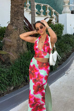 Our Elsa Green Maxi Skirt pairs perfectly with the Elsa Green Halter Top for a stunning floral look! Featuring a mesh outer, maxi length, and high stretch fabric, this skirt offers both comfort and style. Complete the look with sandals for a casual weekend vibe or dress it up with heels for an elegant evening ensemble!