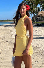 Florida Yellow Satin Mini Dress