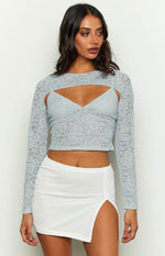 - Looking for an elegant, yet flirty crop top for your next girls night out? Our gorgeous blue lace cami and shrug set is calling your name. Complete the look with some white dress pants and nude heels for a classy look.