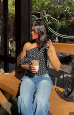Add a touch of playful charm to your look with our Khamie Black Polka Dot One Shoulder Top, a perfect piece for your next date night or dinner. Made from lightweight material, this top features a playful polka dot print and a graceful one-shoulder neckline that adds an elegant touch. Complete the look with your favourite denim and strappy heels for a polished finish.