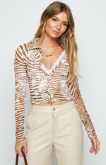 - Brown Zebra Long Sleeve Top