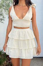 - Simply adorable! This tiered style mini skirt gives summer vibes, we love styling this with the matching crop. Looking for a dressy daytime outfit? Nude heels and gold jewellery would compliment this nicely!